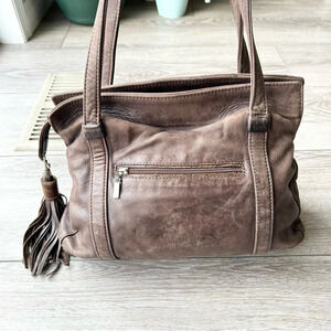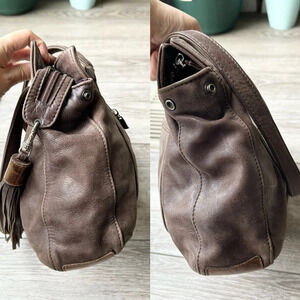 Vintage Brown Distressed Leather Convertible Shoulder Bag with Tassels