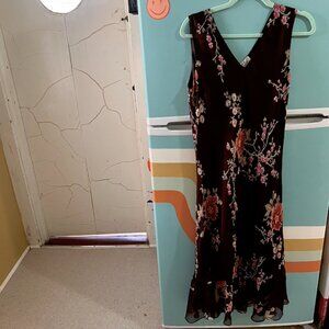 Vintage Brown Floral Dress | Beading | Wedding Guest Dress Late Summer Flowy