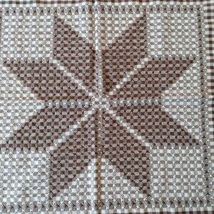 Vintage Brown Gingham Checked Tablecloth featuring Hand Stitched Stars