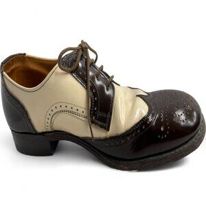 Vintage Brown Ivory Wingtip Leather Shoes Men's 8.5 Lace Up Oxfords Goodyear