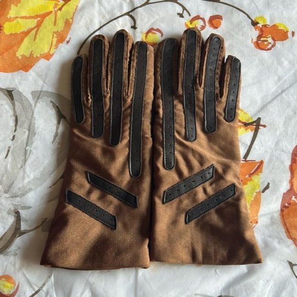 Vintage Brown Nylon Gloves Soft Interior One Size