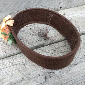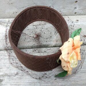 Vintage Brown Ring Hat with Netting and Orange Flower Bandeau Crown Autumn