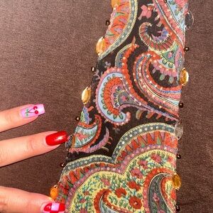 Beaded medallion centre embellishment (coming off, needs to be sewn back on , see last photo) with strands of hanging beads attached
