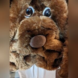 The Original Wrinkles the Dog back pack by Senitt Puppets (Wrinkles was a line of plush toys manufactured by Senitt puppets in the 70's and then Canadian toy manufacturer GANZ in the 1980s. They have been sold as part of Ganz's company's "Heritage Collection in the 80' then the line appears to have been discontinued. The toys were easily identifiable by their characteristic wrinkled faces and were based on the Shar Pei breed of dog. The original design was created by Senitt Puppets, based in Carnarvon, Ontario. Senitt designed and sold hand-made puppets for over twenty years throughout the United States and Canada. Wrinkles was and still is their creation.