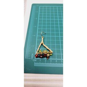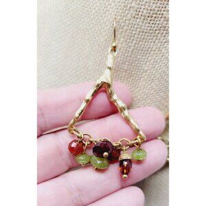Vintage Brown and Green Faceted Glass Beaded Gold tone Dangly Earrings