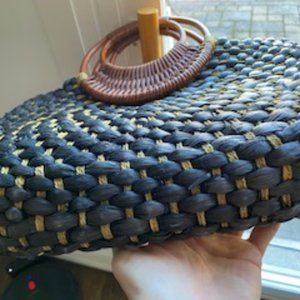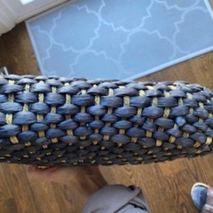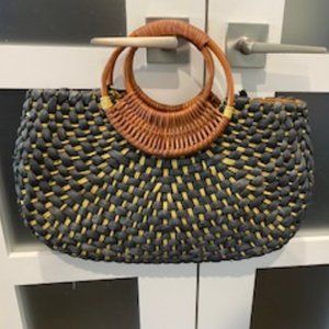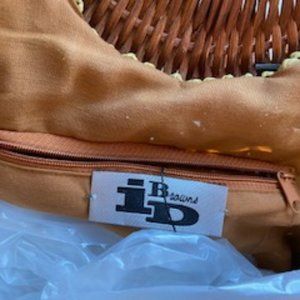 Beautiful vintage Browns straw/raffia beach tote in black & camel- has never been used. Very structured, cotton interior with a zipped pocket. Snap closure,