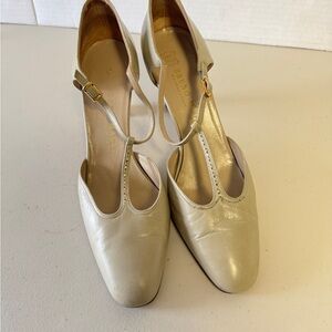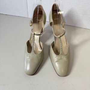 Vintage Bruno Magli Women's Cream T-Strap Heels Size 37 and 1/2