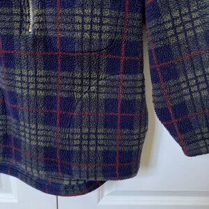 Vintage Bruzer Fleece Mens S Oversized Plaid 1/2 Zip Drawstring 90s Grandpa