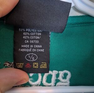 Vintage Budweiser GPC Green White Striped Zip Up Sweater Jacket Large Mens
