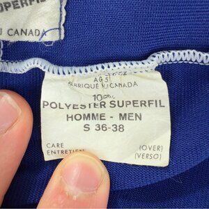 Vintage Buffalo Sabres Men's Size Small 90's Maska NHL Jersey Blue/Yellow in good pre owned condition as shown in the photos with one stain on the middle back of the jersey as shown in the photos. Hardly noticeable.