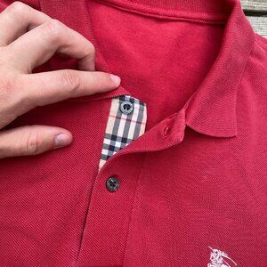Vintage Burberry Brit Polo Button Up T Shirt XL Red