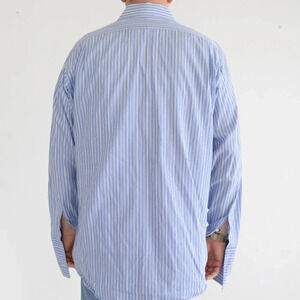 Perfect for adding a touch of sophisticated elegance to any formal or professional ensemble, look your absolute best with Vintage Burberry London Blue Stripe Button Down Dress Shirt.