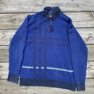 Vintage Burberry Quarter Zip Sweater Medium Blue