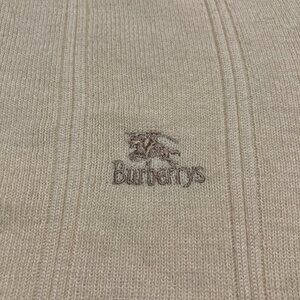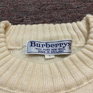 Vintage Burberrys 100% Pure New Wool Sweater Men's Small Cream Elbow Patches
