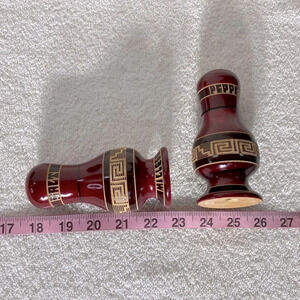 Vintage Burgundy Carved Wood Salt & Pepper Shakers