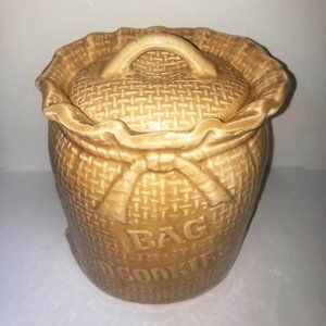 Vintage Burlap Bag Cookie Jar Bag O'Cookies made in Canada