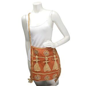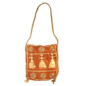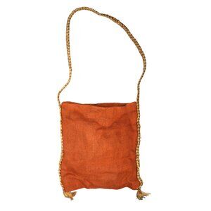 Vintage Burlap Jute Tote Bag Purse Braided Straw Lightweight Brown Tan Folk Art