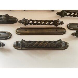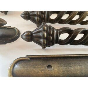 Beautiful set of 8 vintage solid brass cabinet handles with ornate backplates. These feature a twisted openwork design and warm burnished finish—perfect for furniture restoration or DIY home décor projects.