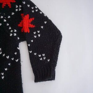 Vintage Busani Knit Sweater Black Red Maple Leaf Cabincore Retro Ski L