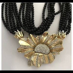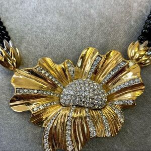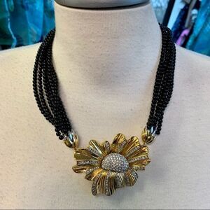 Vintage Butler 5th Avenue Collection Necklace Gold Tone Flower Black Beads