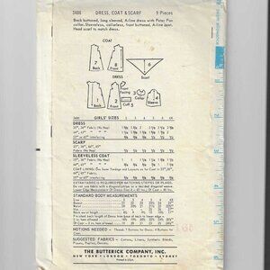 Vintage Butterick Pattern 3486 (Old #) Quick & Easy Dress, Scarf, Sleeveless Coat for Child Size 4 - Used All Pieces OK - Mid Century