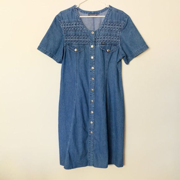 Vintage Button Down Denim Fit And Flare Midi Dress XL
