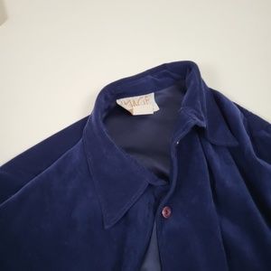 Vintage Button Down Shirt Top Cover-up Cardigan Duster Flannel Fleece Navy