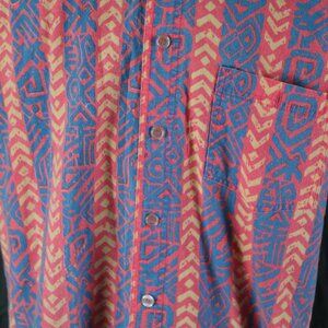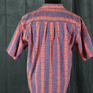 Vintage Button Down shirt - Neon Stripe Tribal Pattern - Men's Extra-Large