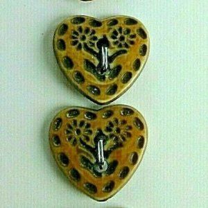 Vintage Buttons Hearts Daisy Flowers Hand Knit 2 Cards Flora K1001 Wool Cardigan