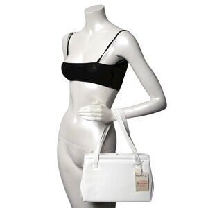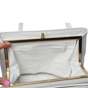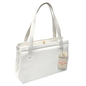 Vintage CALEGO Vegan Faux Leather Handbag 1970s Purse White Gold Simpsons Store