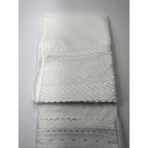Vintage CANNON IVORY Embroidered Lace King Pillow Case Cotton Blend Set Of 2