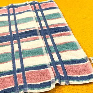 Vintage CANNON USA Landmark Collection Pink Blue Teal Stripes Bath Towel