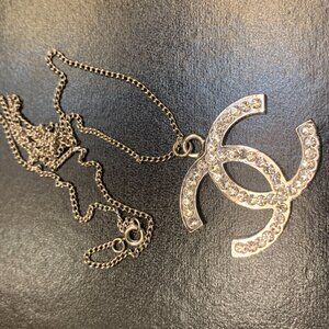 Vintage CC Logo Rhinestone Pendant on 23 inch Chain Necklace