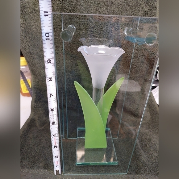 Vintage* CG Cressida Glass Tulip Vase. Top of tulip is frosted and clears to base. All glass. No visible blemishes. Flower sits between thick glass pieces.