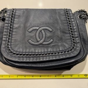 Chanel Leather Luxe Ligne accordion flap bag, dark navy blue. With the exception of the magnetic snap closure, the hardware is in excellent condition as you can see in the photos and video. Very nice practical color, goes with everything. A very small micro scratch on the back as shown in the photo. The leather interior is clean, no stains, the exterior too, perfect condition. Delivered with dustbag.