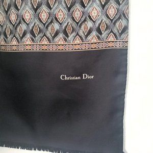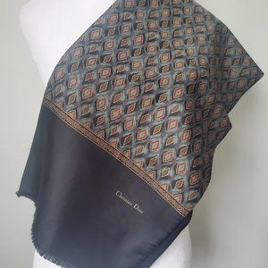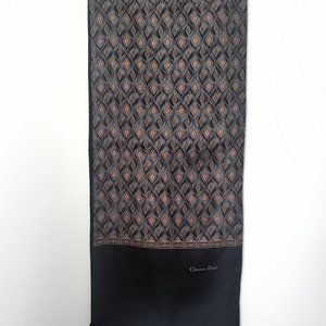 Vintage CHRISTIAN DIOR Silk & Wool Long Neck Scarf Geo Pattern Black Red Grey