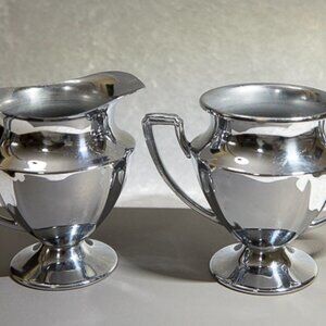 Some minor wear and scratches on handles. Minor scratching on finish of both the sugar bowl and the creamer.