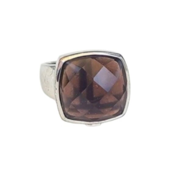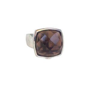 Vintage CHUNKY Sterling Silver 925 Square Smoky Quartz Cocktail Ring Size 7