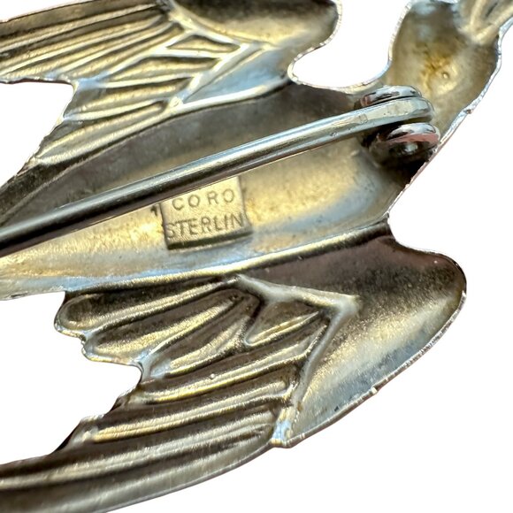 Vintage CORO Sterling Silver Bird in Flight Brooch Pin Swallow