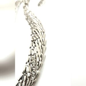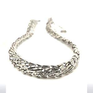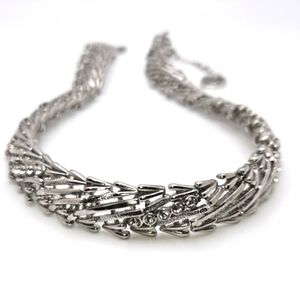 Rare 1950's Trifari Choker with Interlocking Links of Cutout Metal Brutalist Rhodium Plated necklace with Rhinestone Accents 1950's