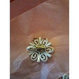 Vintage CROWN TRIFARI - white enamel - flower starburst snowflake clip EARRINGS