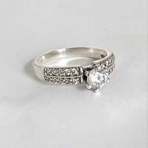 Vintage CZ Pave Crystal Prong Set 2 Row Sterling Silver Band Ring