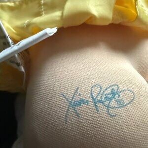 1 doll is missing both gloves; the other has one. One of the elastic bands on the doll's hair is coming apart.