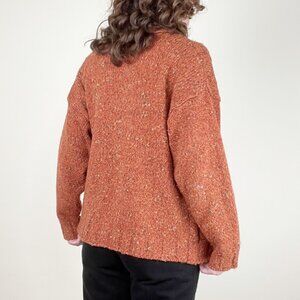 Wrap yourself in the rustic charm of this vintage wool blend cable knit cardigan, featuring a warm, rich orange hue and beautiful texture perfect for cozy days. The classic button-down front, short collar, and timeless cable pattern offer a versatile and comfortable layering piece that brings a touch of handcrafted style to any wardrobe.