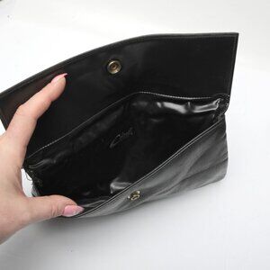 Vintage Cabrelli Faux Leather Fold Over Clutch Bag Black 80s Canada Retro