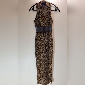Vintage Caché Leopard Print Halter Dress with Mesh Detail- Size 4