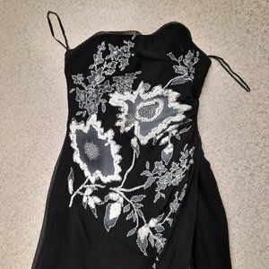 Vintage Cache Silk Beaded Strapless Gown Black and White