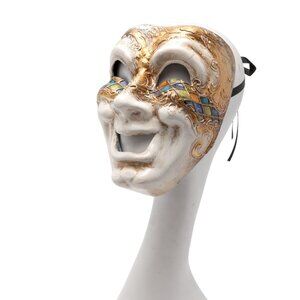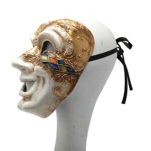 Vintage Ca'del Sol Venetian Comedy Mask Masquerade Ball Music Gold White Italy