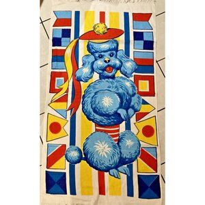 Vintage Caldwell 70's Red Blue Poodle Dog Bath Towel Bathroom Decor 53 x 30.