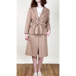Stunning Vintage Camel Hair Wool Matching Midi Skirt Suit Set Preppy Belted Co-ord